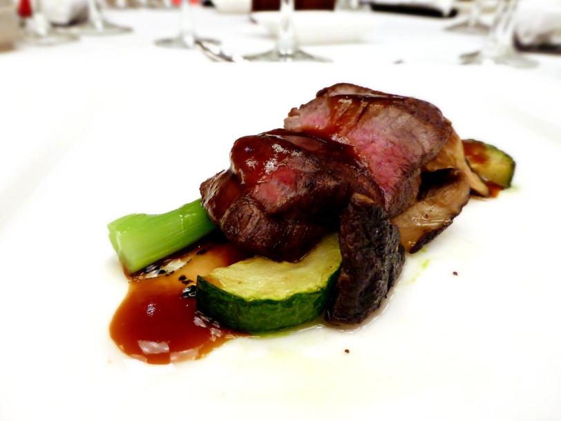 Roasted Japanese fillet of beef on a bed of seasonal vegetables