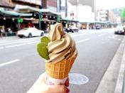Houjicha soft cream from Gion Tsujiri (祇園辻利) which is a retail shop selling tea and equipment for tea as well as some takeaway options like soft cream. This cost ¥430 and was so good, I could easily have another one with the rate I gobble up my ice cream.