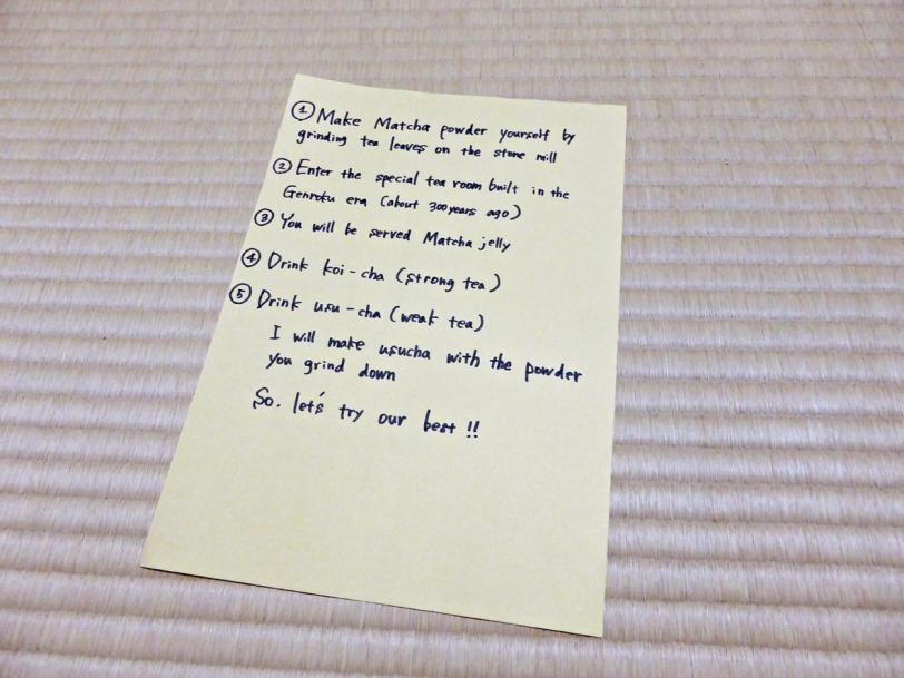As the guide does not speak English, he could only explain everything very briefly. He explained that this shop has been passed down for generations and is a very old name in Uji. After the introduction, it was time to get grinding.