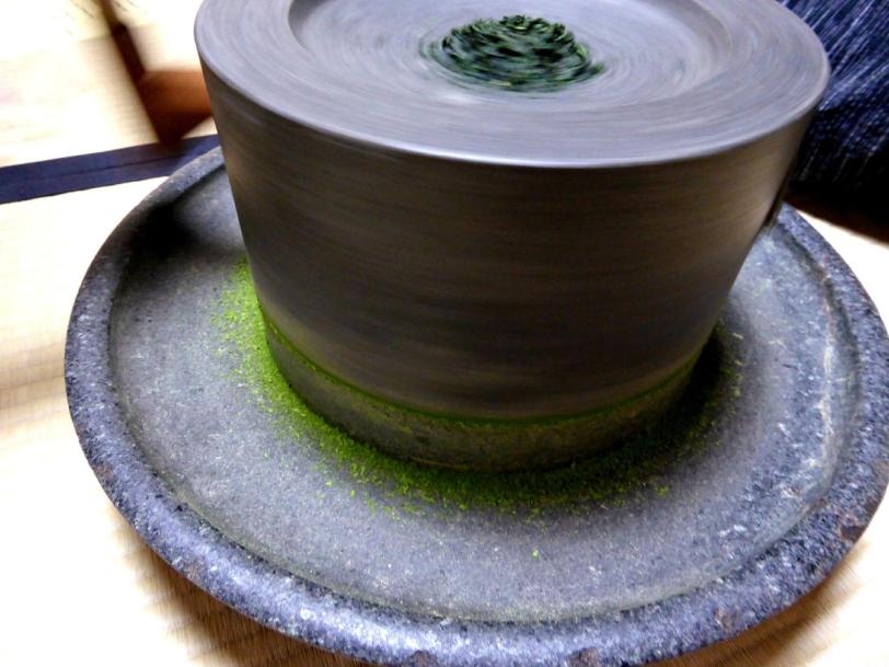 The stone grinder has to be worked by hand and for good quality matcha it must not be spun too quickly.