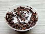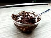 This is completely dairy free with no eggs, cream or milk and it’s the first time chocolate without dairy tasted so good to me! Coconut oil is essential in this recipe because it solidifies the whole mixture to make it into a mousse/ pudding. The coconut oil gives it the divine coconut taste too, which is half the reason why it tastes so good. Do not scrimp on the coconut oil – use one which tastes good. I topped it with raw cacao nibs and desiccated coconut and the combination can’t be better!