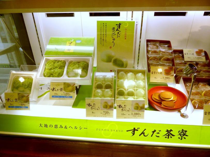 At Sendai station there are several Zunda Saryo shops everywhere selling Sendai’s famous zunda mochi and other zunda products in gift boxes but there’s a sit in cafe at the lower level of the station.