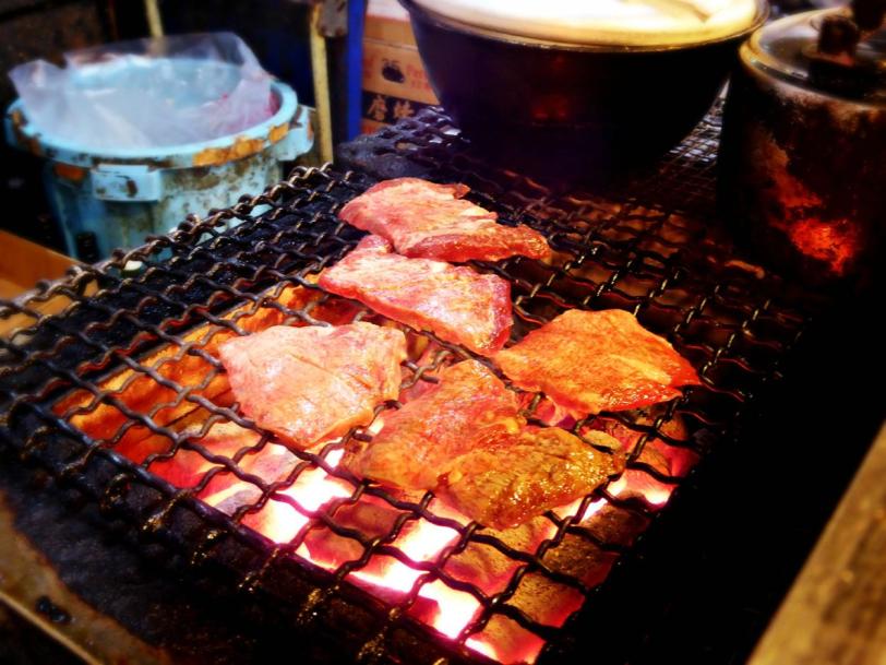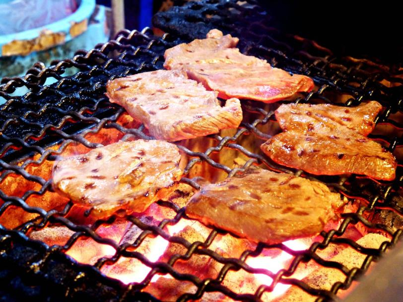 Raw gyutan was cooked over the charcoal grill.