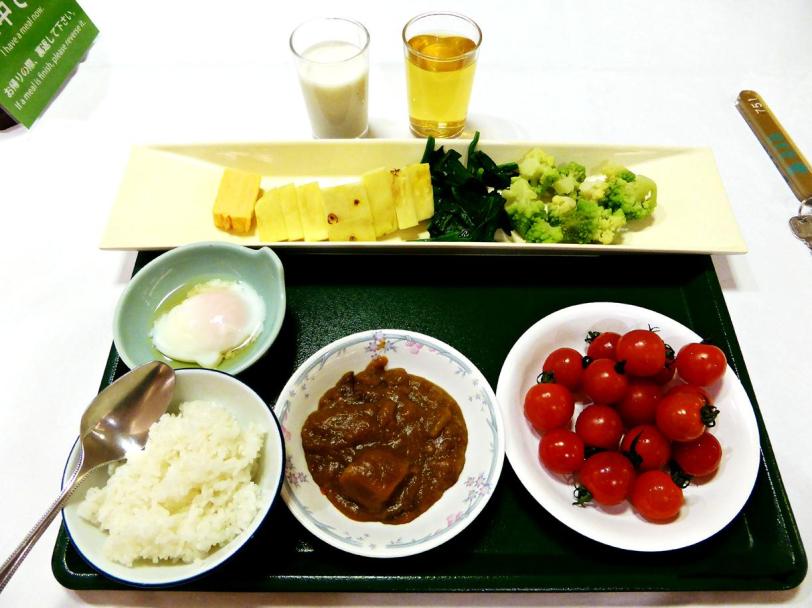 I had the onsen tamago, Kowai farm milk, curry rice, lots of tomatoes, pineapples and Romanesco, a relative of broccoli.