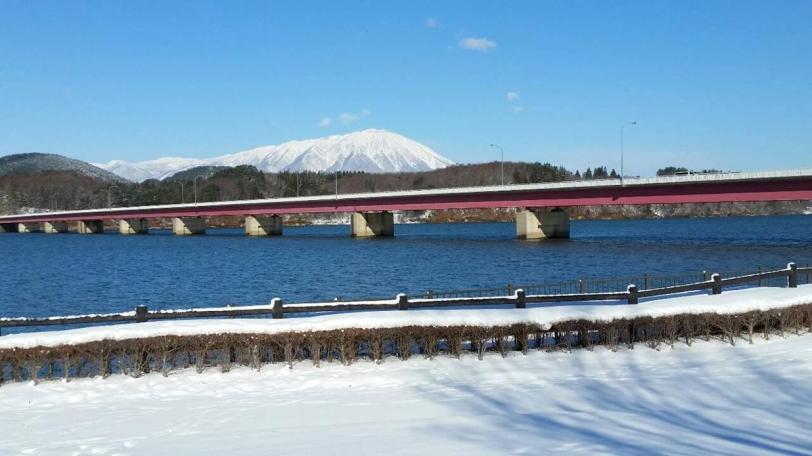 Lovely view of Mount Iwate. The top of the mountain already looks snowy.