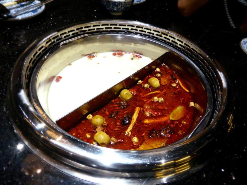 Always get twin soups because only the spicy one would give your meat flavour but for something to drink it has to be non-spicy. The soup base is shark bone cartilage which is packed with collagen. The soup is really good.