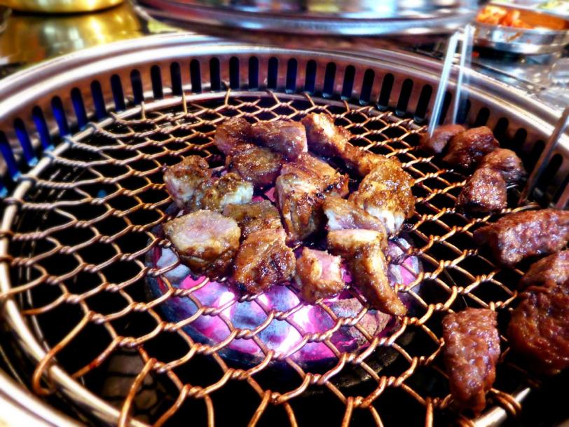 Here they use charcoal grills (with flame too, so it’s not 100% charcoal) and each station has a suction for the fumes so the experience is more or less smokeless and doesn’t make you smell bad.