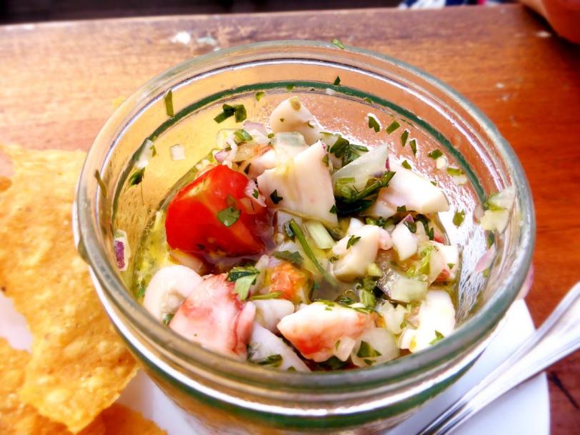 I ordered both ceviches because I love ceviche! I first had ceviche at Morsels and I really miss it ever since. This is basically raw fish or seafood marinated in lemon juice which “cooks” it, giving it the cooked colour. I didn’t really think that it would come with so many chips. If I had known I probably would not have ordered the chips with guacamole and salsa.
