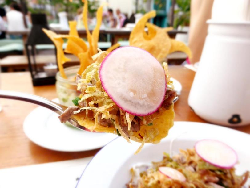 Chorizo & braised beef brisket taco, spring onion, herbs