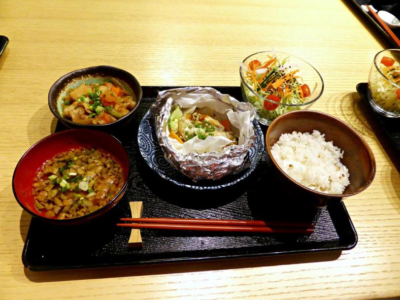 Yakisoba is another very common Japanese dish eaten daily by Japanese people. It’s as simple as our mee goreng or chow mien. If you don’t want a meal too filling you can choose this one, which comes with a small side dish and dessert.