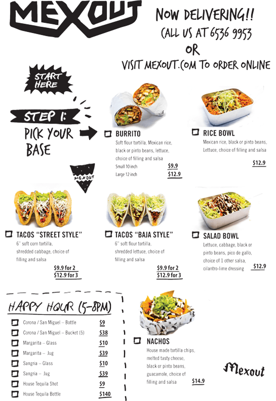 At Mex Out, the menu was kept minimalistic and it sort of resembles fast food type of Mexican you find overseas – choose your choice of base (burrito, taco, nachos or bowls), choose your meat, choose your salsa and choose any add ons. Make it a meal by adding $3.50. Only difference is that this isn’t a fast food chain and is more like a casual restaurant instead, with table service. Expect prices higher than fast food but lower than a full restaurant (around $10 – $15).