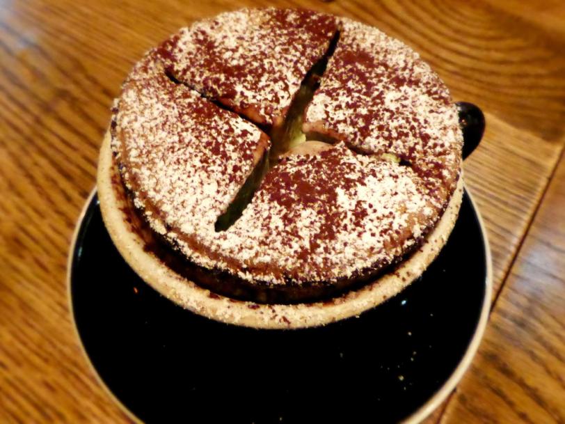 Chocolate pistachio soufflé with crème anglaise – $18.00++