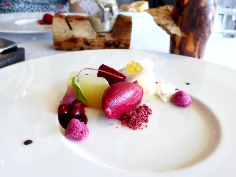 First course was beetroot prepared in several styles. I am not a big fan of beet so this wasn’t my favourite dish for sure. It was no doubt beautifully presented though. The olive oil “caviar” did give it a nice finishing touch. I’ve been wanting to make my own olive oil or shoyu “caviar” at home but haven’t found time for that.