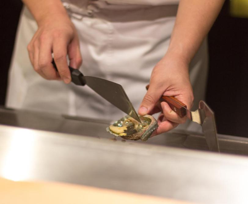 Abalone freshly shucked onto the teppan. This was the first dish of the night using the teppan and things were starting to heat up (literally).
