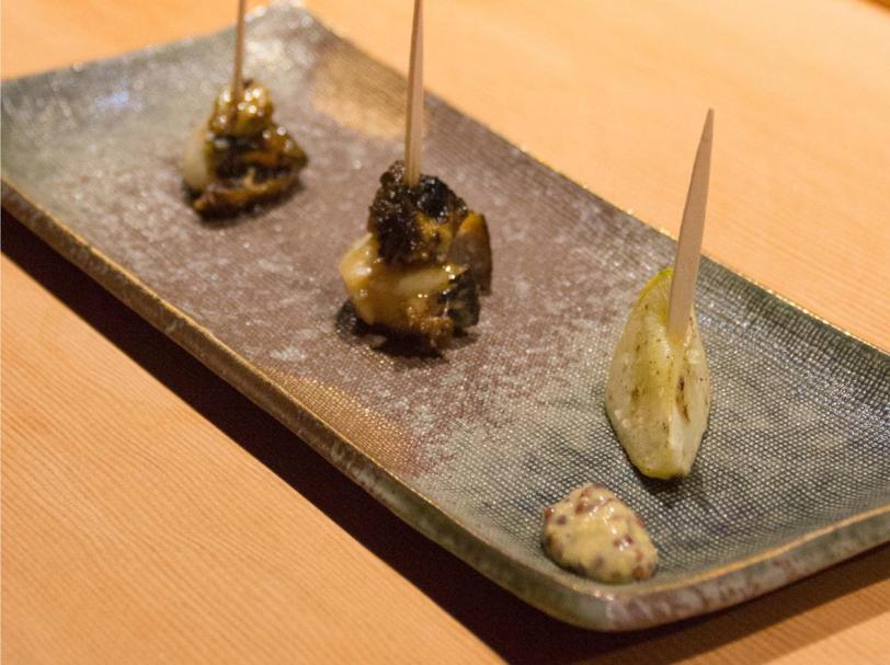 As for Satsuki’s Teppan Kaiseki, they serve dishes fitting the theme of traditional courses, but some of the main courses comprises of various items cooked on the teppan, on skewers or pinchos.