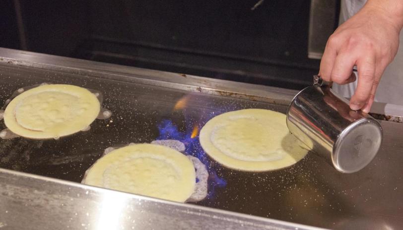 … the dessert wasn’t simply something taken out of their fridge and prepared beforehand, but was actually designed to be cooked on the Teppan by the Chef a la minute! I really commend his effort. Here’s some crêpe suzette on fire.