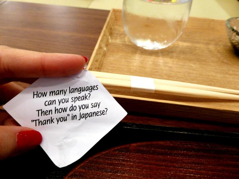 A message from the chef wraps every pair of chopsticks. ありがとう!