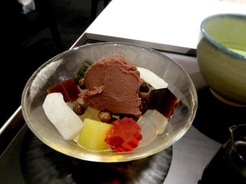 Red bean paste and Japanese jelly. Ala carte would be ¥1188.
