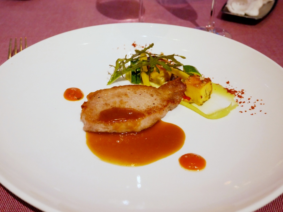 Olive Pork, Tamago made Southern French style, Potato and Pea Puree