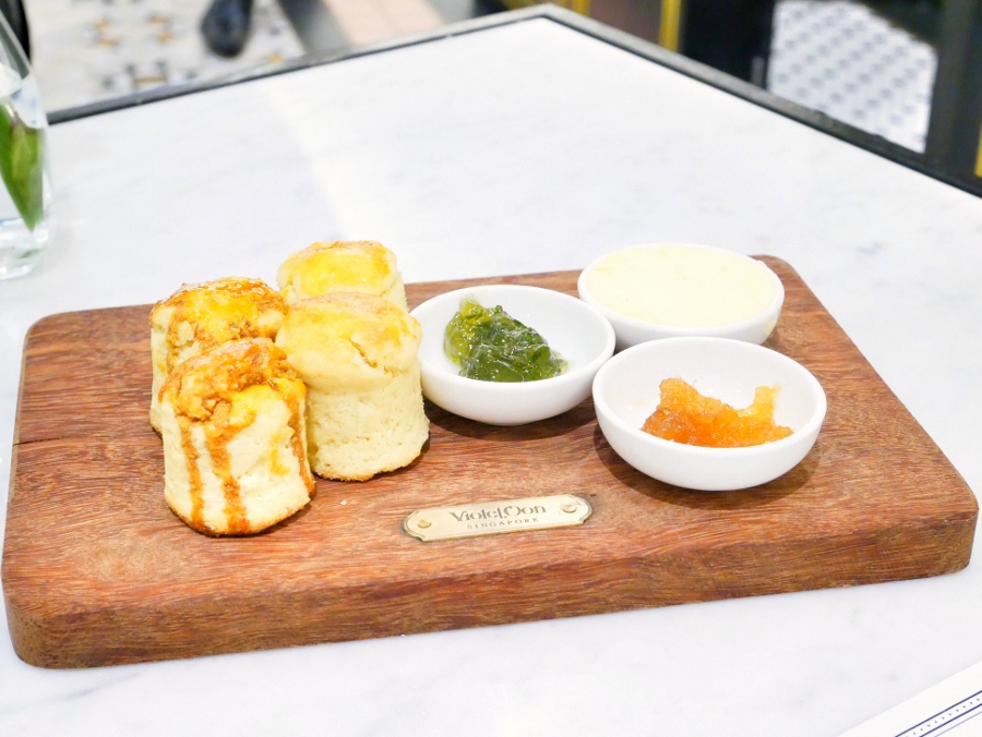 House-made scones served with clotted cream and jam Two plain and two gula melaka scones served with clotted cream and jams